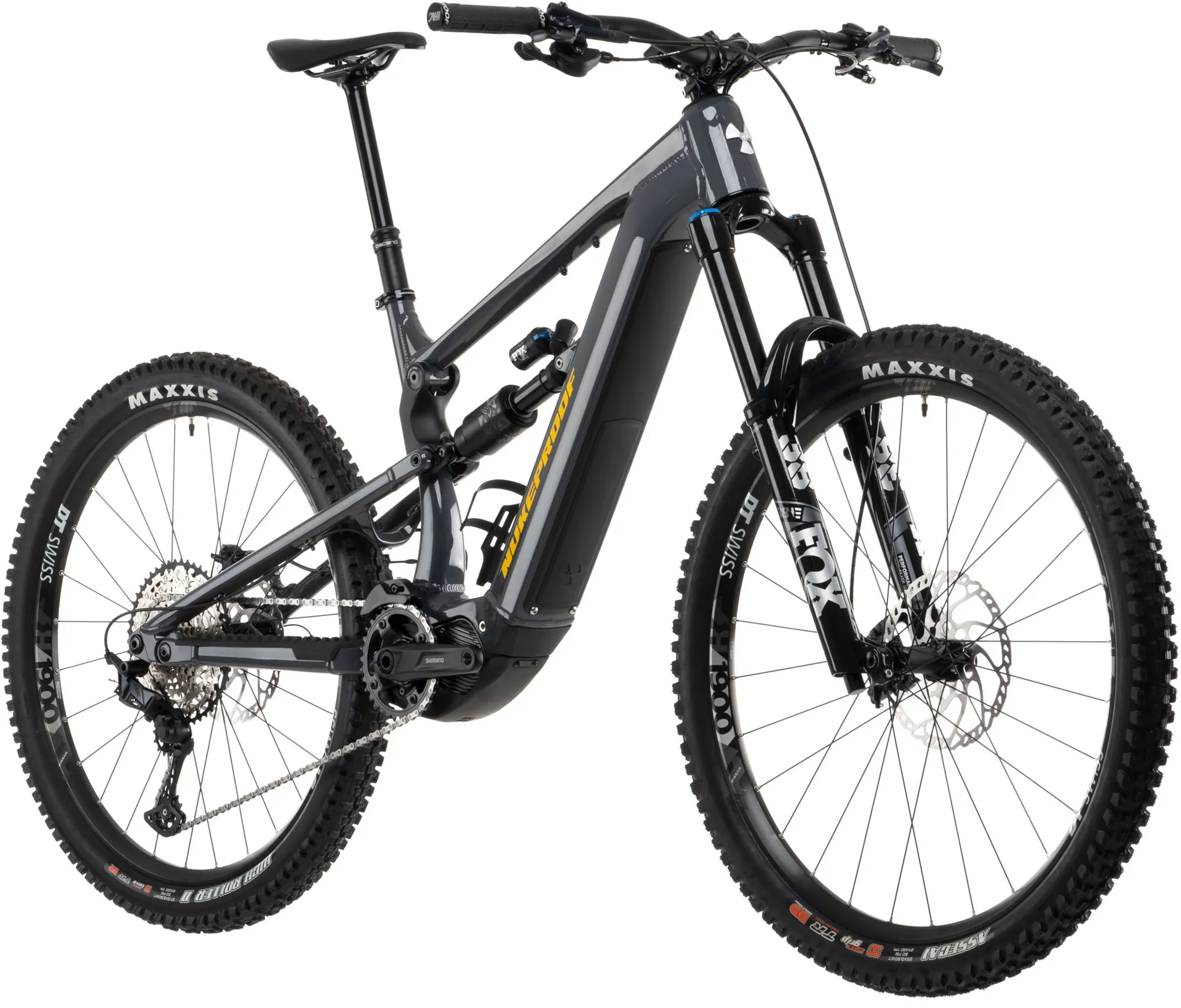 • Frame:Nukeproof Megawatt 297 Alloy, 170mm Travel, custom triple butted hydro-formed tube set, internal Battery, Internal cable routing, Enduro Bearings, Boost 148mm rear axle spacing, 3D contoured Rubber frame protection, Shimano STEPS compatible