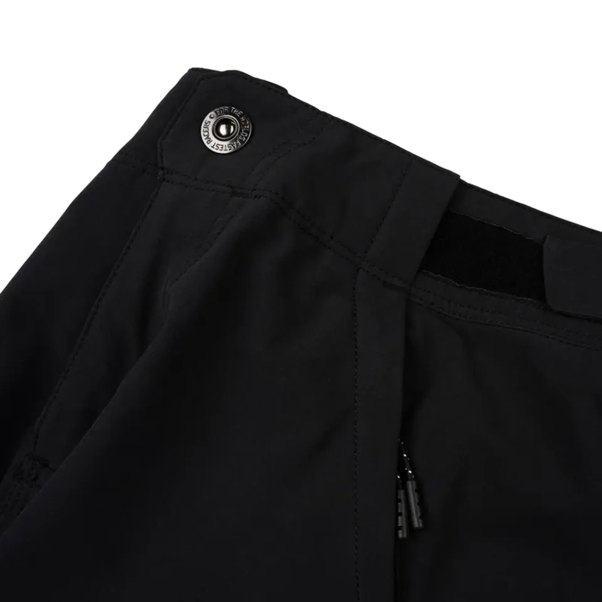 • Tough, fused waistband with Velcro waist adjusters, zipper fly with snap closure