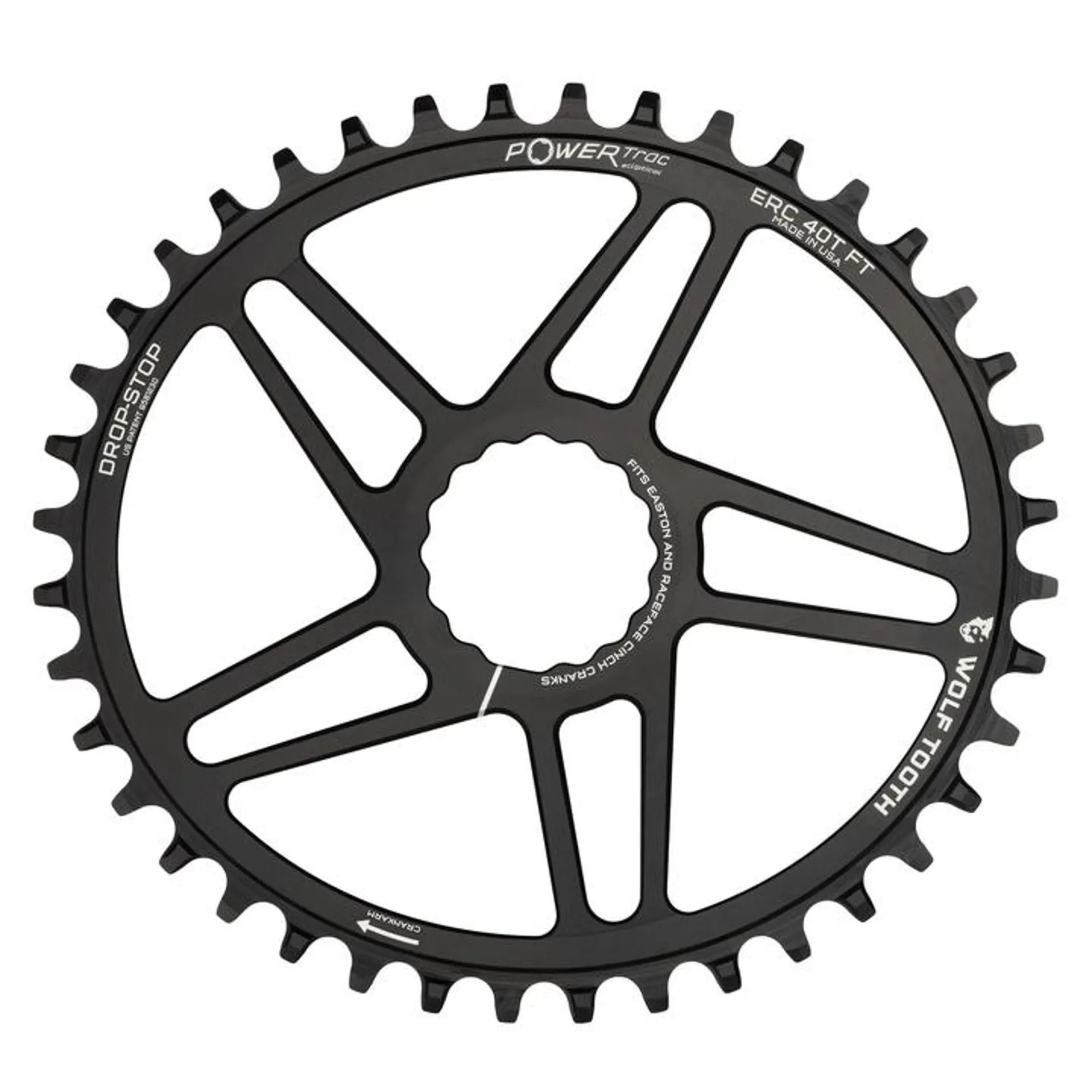 In line with Wolf Tooth's guiding ethos of providing unrivalled design innovation, reliability and durability, this chainring employs a patented drop-stop wide-narrow tooth profile which not only keeps the chain securely in place on single chainring setups but dislodges mud, dirt and excess precipitation more efficiently. For additional security in extreme conditions, this chainring is best used with a clutch-type rear derailleur.