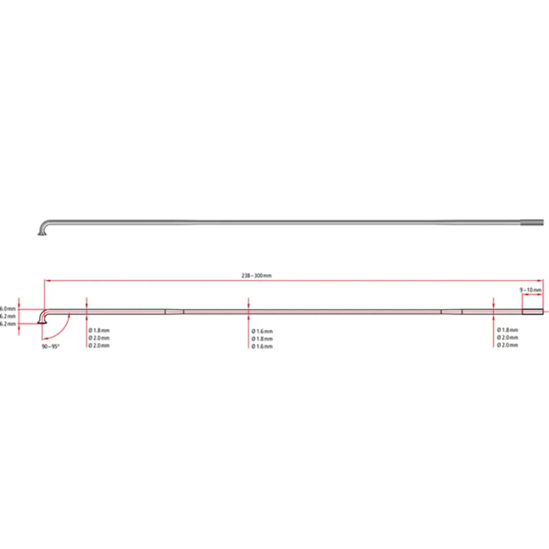 • The 14 / 16 gauge double butted spoke is 1.6 mm thick in the centre to save weight, but 2 mm thick at the end where strength is needed with a 2 mm thread, ideal for building with dt's phr system rims
