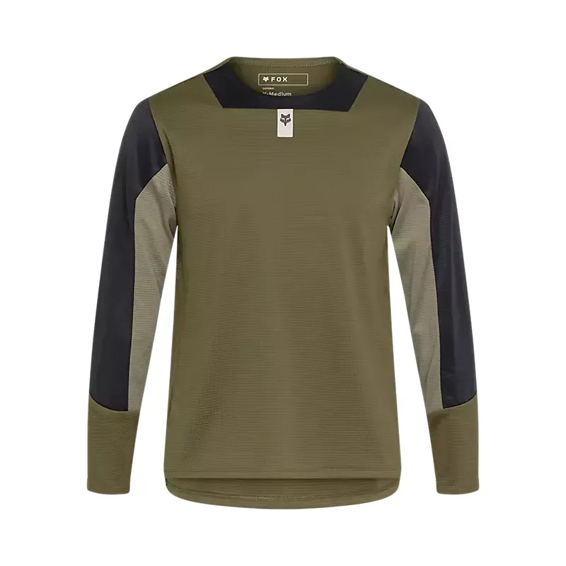 Fox Youth Defend Long Sleeve Jersey in Olive Green