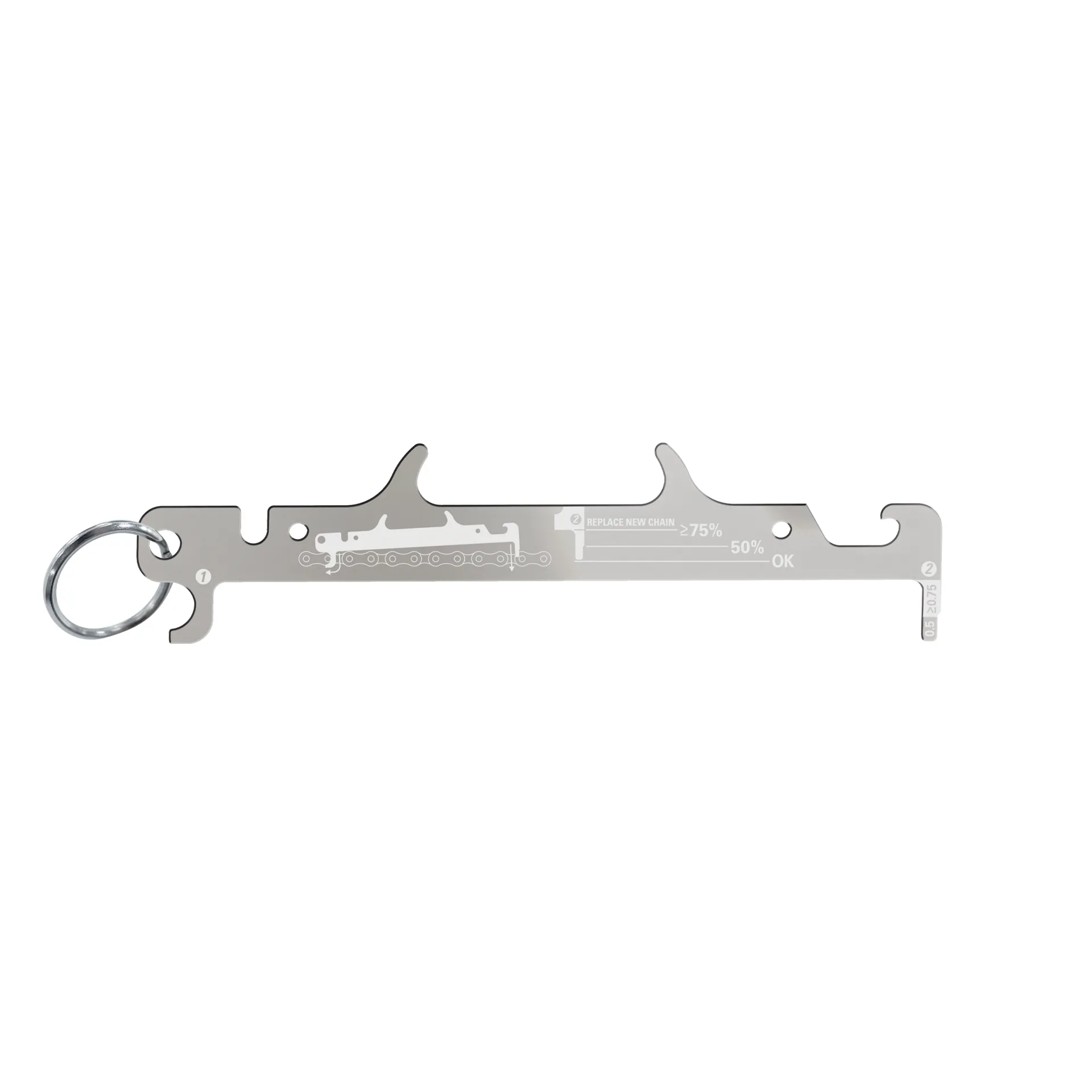 Compatible with most 5-12-speed bike chains and precision-machined for superior accuracy, the chain gauge is a stainless-steel insurance policy against premature drivetrain wear. Hang it close to your repair stand with the included ring so you'll never go too long without checking your chain for wear again, just don't forget to put it back after cracking a cold one with the integrated bottle-opener.